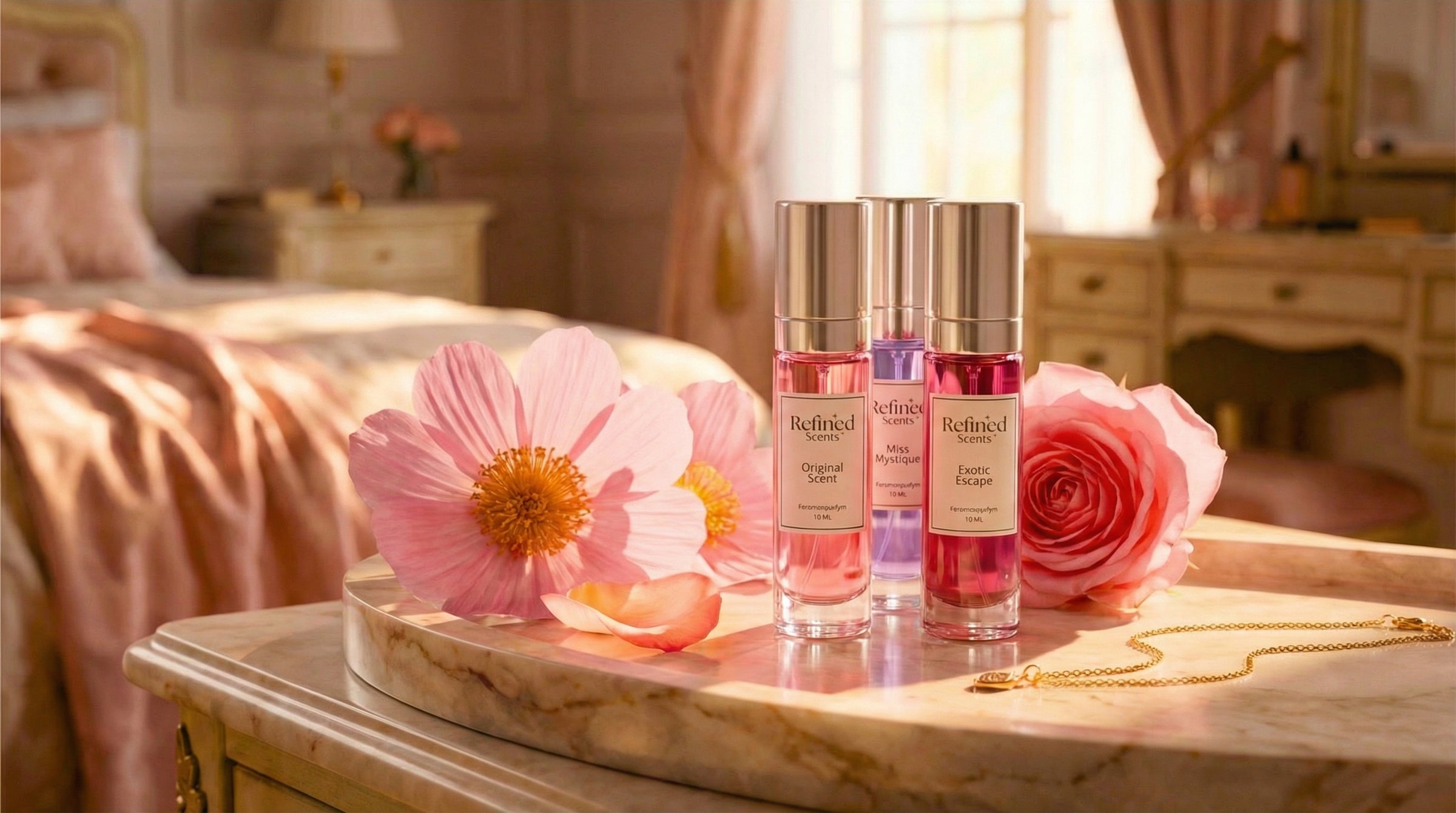 Feromoninfuseret. Fascinerende. Og holder hele dagen. Oplev hvorfor kvinder overalt bruger Refined Scents.
